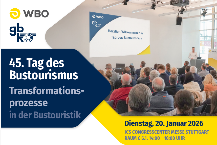 Der Verband Baden-Württembergischer Omnibusunternehmen e.V. (WBO)und die Gütegemeinschaft Buskomfort e.V. (gbk) laden herzlich zu einerFachtagung ein, die Impulse geben, Perspektiven öffnen und zum Dialog anregen möchte. Der Bustourismus ist in Bewegung – und das nicht nur auf der Straße. Zwischen Tradition und Aufbruch, zwischen analoger Leidenschaft und digitalem Fortschritt erlebt die Branche spannende Zeiten des […]