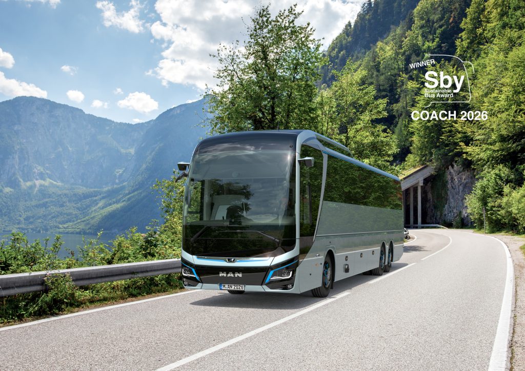 MAN Lion’s Coach E erhält Auszeichnung „Sustainable Bus of the Year 2026” in der Kategorie Reisebus Award wurde bei der Gala Night auf der Busword Europe verliehen Internationale Jury begeistert von leistungsstarkem Elektromotor, hoher Reichweite, Nachhaltigkeit, Komfort und Sicherheit eCoach setzt technologische Maßstäbe für einen nachhaltigen Reiseverkehr Preisgekrönte eBus-Familie: MAN gewinnt zum dritten Mal in […]