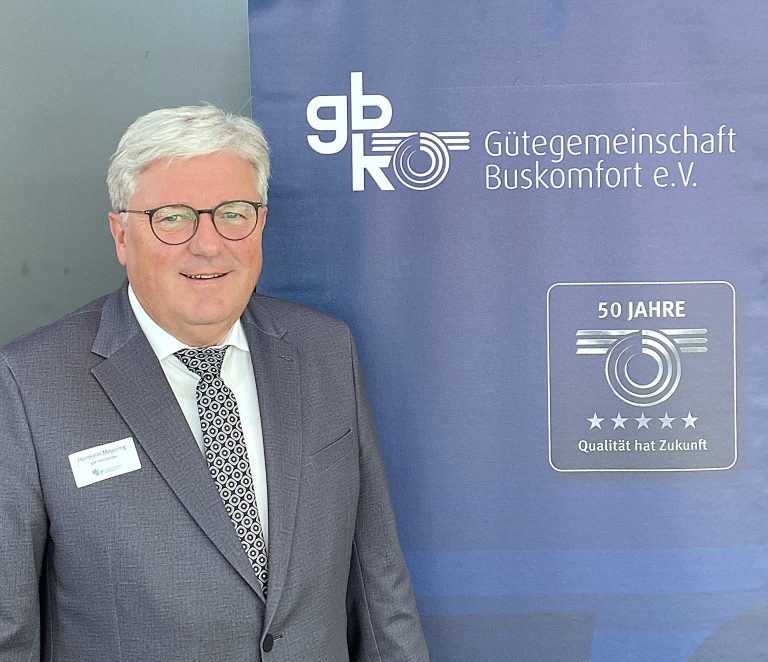 Auf der Mitgliederversammlung der Gütegemeinschaft Buskomfort in Stuttgart wurde Hermann Meyering einstimmig für eine weitere Amtszeit als Vorsitzender bestätigt. Meyering führt den Verband seit 2011 und prägte in dieser Zeit unter anderem das flexible Punktesystem zur Klassifizierung sowie das Zusatzprädikat „Superior“. Während der Corona-Pandemie setzte er sich zudem erfolgreich für Finanzhilfen für die Bustouristik ein.