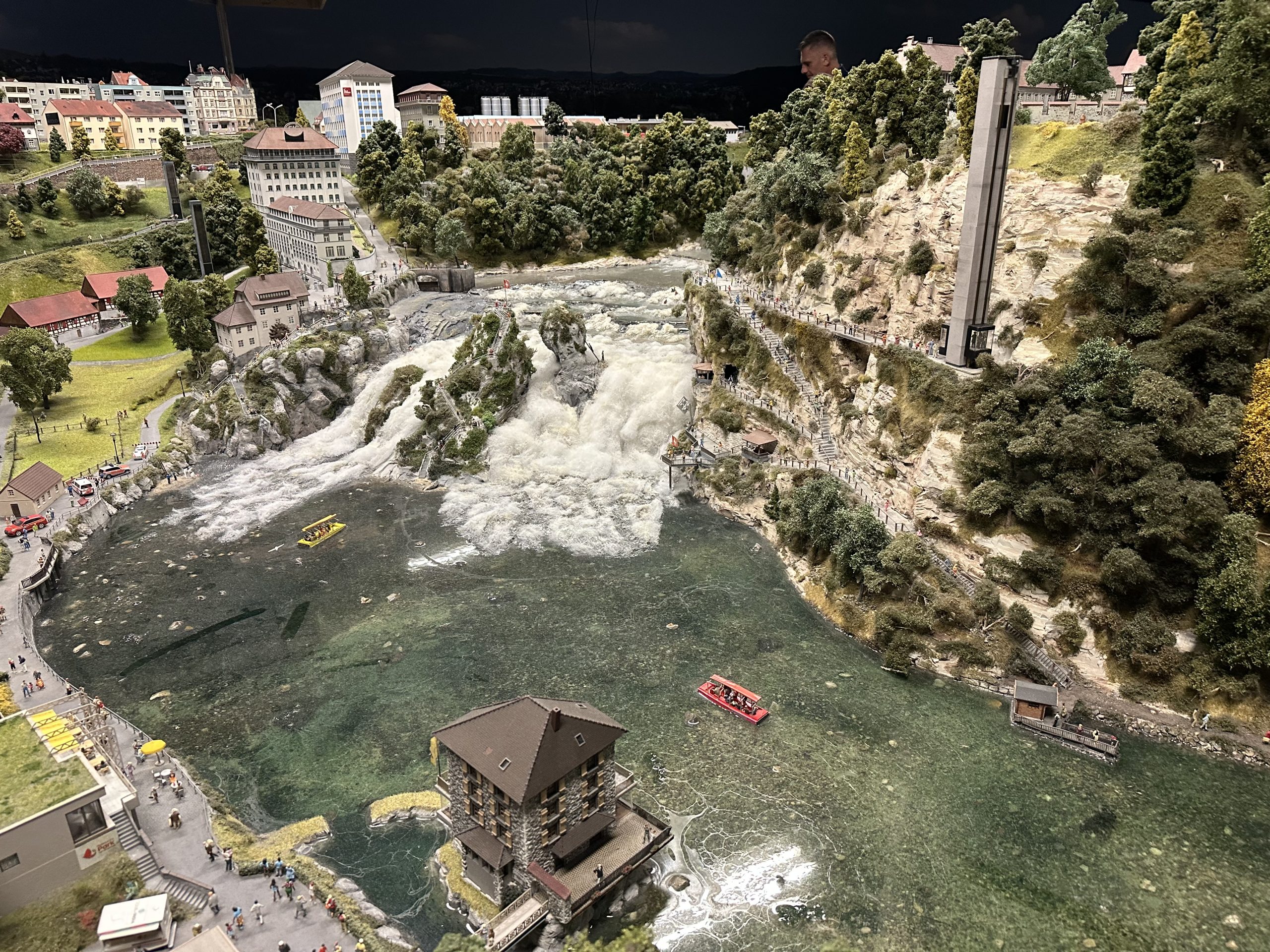 Mit viel Liebe zum Detail präsentiert die Smilestones Miniaturwelt markante Landschaften aus der Schweiz wie den Rheinfall als Modell.
